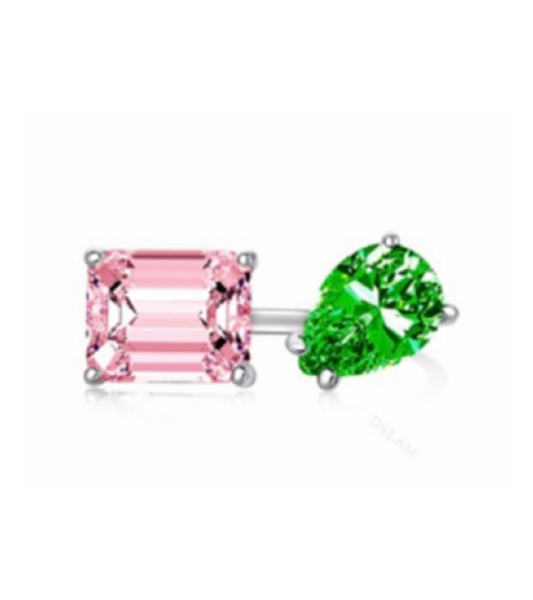 Adjustable Sterling Silver Ring with Pink, Green, and Clear Cubic Zirconia