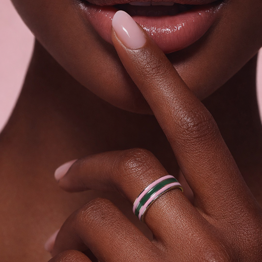 Adjustable Sterling Silver Ring with Pink, Green, and Clear Cubic Zirconia